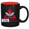- Women's black V-neck shirt with the Delta Tactical logo on the left chest and the back.